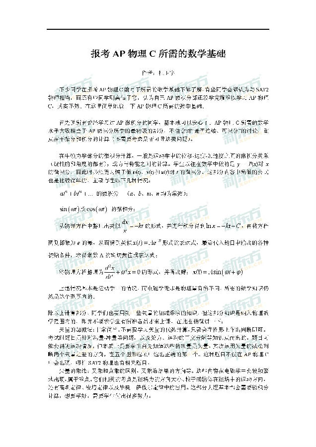 國際學校網在線為大家精心整理了報考AP物理C所需的數學基礎的相關內容,分享給大家,供大家參考,希望對大家有所幫助!