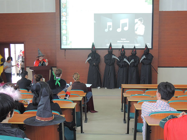 10月31日上午,巫婆僵尸、勇士海盜齊齊現身上海楓葉國際學校,各顯神通比拼自己的創意!學生們不僅把掃帚、鬼臉搬上了各個教室的文化墻,還舉行了萬圣節服飾PK賽。學生們自愿上臺展示自己的服飾,并進行表演。臉譜、古裝輪番上陣;動漫和卡通人物紛紛光臨現場;走了馬里奧,又來了南瓜姑娘;哈利波特和小伙伴們擊退敵人還送來萬圣節糖果……選手們精彩的表現贏來了現場觀眾的熱情歡呼。獲獎選手都獲得了校長送的一份早餐。