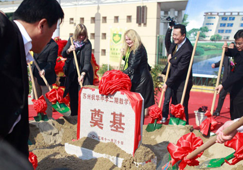 中加楓華國際學校新教學樓開工奠基儀式上,來自中國電建上海電力建設有限責任公司的副總裁胡建華先生表達了他對此次合作的初衷和想法,他表示,作為一家位列世界五百強的中央大型國有企業,選擇和中加楓華國際學校攜手合作,以央企雄厚的經濟實力來支持和加速中加楓華國際學校的快速發展,為中加楓華國際學校的未來發展保駕護航,希望通過這樣的方式,為中國的民辦教育事業貢獻一份綿薄之力。來自各界各方的通力協作,楓華如虎添翼,可以預見蘇州中加楓華中學的未來,會因為全體楓華教育工作者的努力、用心及堅持,而更加美好!