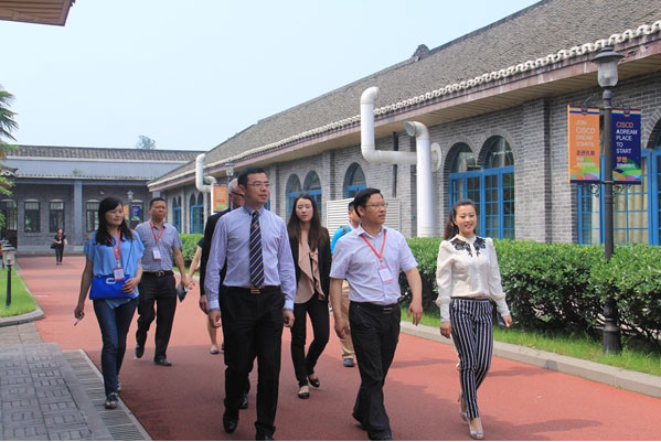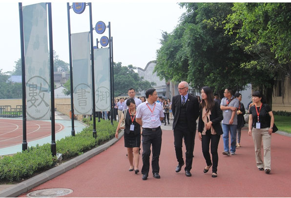 ——校領導熱情接待考察團,并帶領參觀了孔裔獨具特色的校園