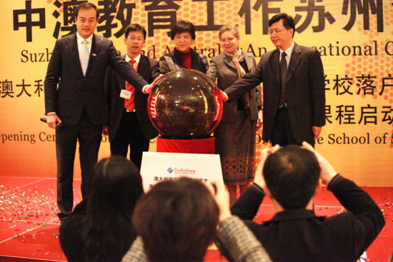 2014年3月23號(hào)到29號(hào),來自全澳洲較頂級(jí)的40所學(xué)校的校長(zhǎng)和重要大學(xué)的著名院長(zhǎng)及教育界權(quán)威教授齊聚蘇城,參加出席了中澳教育會(huì)議。澳大利亞駐北京大使館公使級(jí)教育參贊Cathryn Hlavka女士、中國(guó)國(guó)內(nèi)重要省份的教育廳外事代表以及中國(guó)的學(xué)校校長(zhǎng)等也出席了此次會(huì)議。