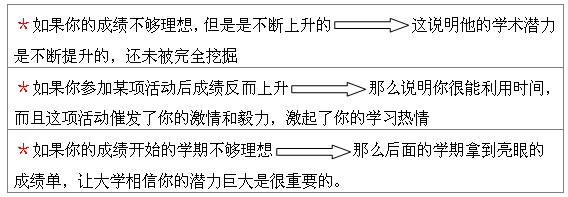 與中國的“一考定終身”的高考制度不同,美國大學更注重學生的平時課業表現,就是我們常說的GPA(平均成績)這是由高中成績單來體現的。高中成績可以讓大學招生官員了解申請人對學術的專注dedication to academics、學術熱情academic fervor、抱負ambition和工作責任感work ethics。
