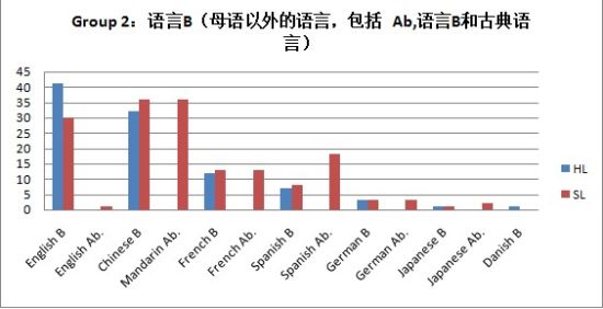 1.第一組母語中較受歡迎科目是中文A:文學;其次是英語A文學;