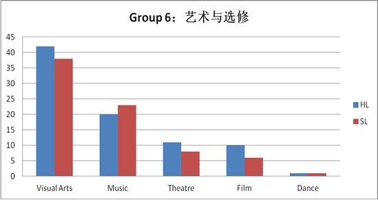 6.第六組藝術中較受歡迎科目是視覺藝術;其次是音樂。