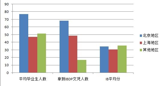 1.2013年IB平均畢業生人數北京地區較高,平均每個學校有70多名畢業生;