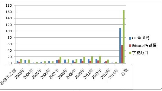 其中CIE在四個直轄市和32個其他城市開設(shè)共計109學(xué)校;EDXCEL則在四個直轄市和28個城市開設(shè)50所課程學(xué)校。