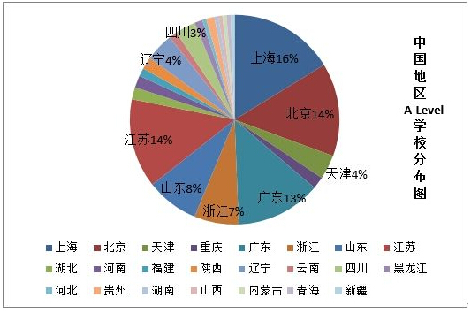 目前開設(shè)數(shù)目較多的地區(qū)是北京、上海、江蘇、廣東,平均都擁有20個以上的A-level學(xué)校。